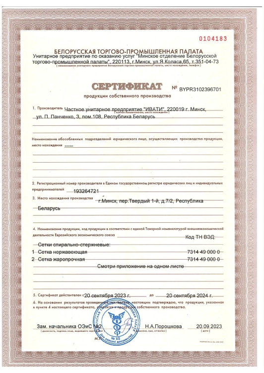 ПРОИЗВОДСТВО СЕТОК МЕТАЛЛО-ПРОВОЛОЧНЫХ, ПЛЕТЕНЫХ, ТКАНЫХ, ТРАНСПОРТЕРНЫХ